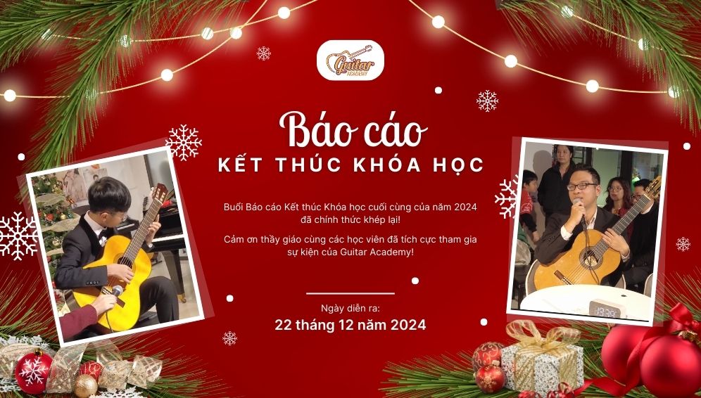 Trong không khí se lạnh của những ngày cuối năm, Guitar Academy Láng Hạ đã khép lại mùa biểu diễn cuối khóa 2024 bằng một đêm nhạc đầy cảm xúc diễn ra vào tối ngày 22 tháng 12. Đêm diễn không chỉ là dịp để các học viên thể hiện thành quả học tập của mình mà còn là nơi giao hòa giữa âm nhạc và không khí Giáng sinh ấm áp đang tràn ngập khắp phố phường.